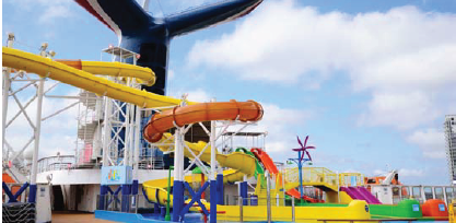 During an extensive month-long dry dock the vessel was fitted with a new WaterWorks aqua park (pictured), 38 new staterooms, an array of food and beverage concepts and 98 balconies were added to existing accommodations.
