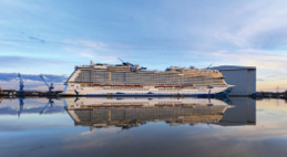 The 303 metre-long vessel made her way down the Ems River and up to the North Sea in reverse, making the narrow passage through Meyer Werft’s sea lock with less than 1.2 metres clearance.