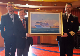 A traditional ‘giving back’ ceremony took place aboard the Ovation of the Seas in Sydney yesterday as marine artist Stan Stefaniak presented captain Henrik Loy with an original painting of the ship.