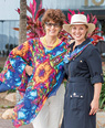 Designed in collaboration with local artist Pip Earl – pictured with Port of Townsville corporate affairs officer Nyree Bolton – the design features silk panels and scarves inspired by the tropics and the Reef.